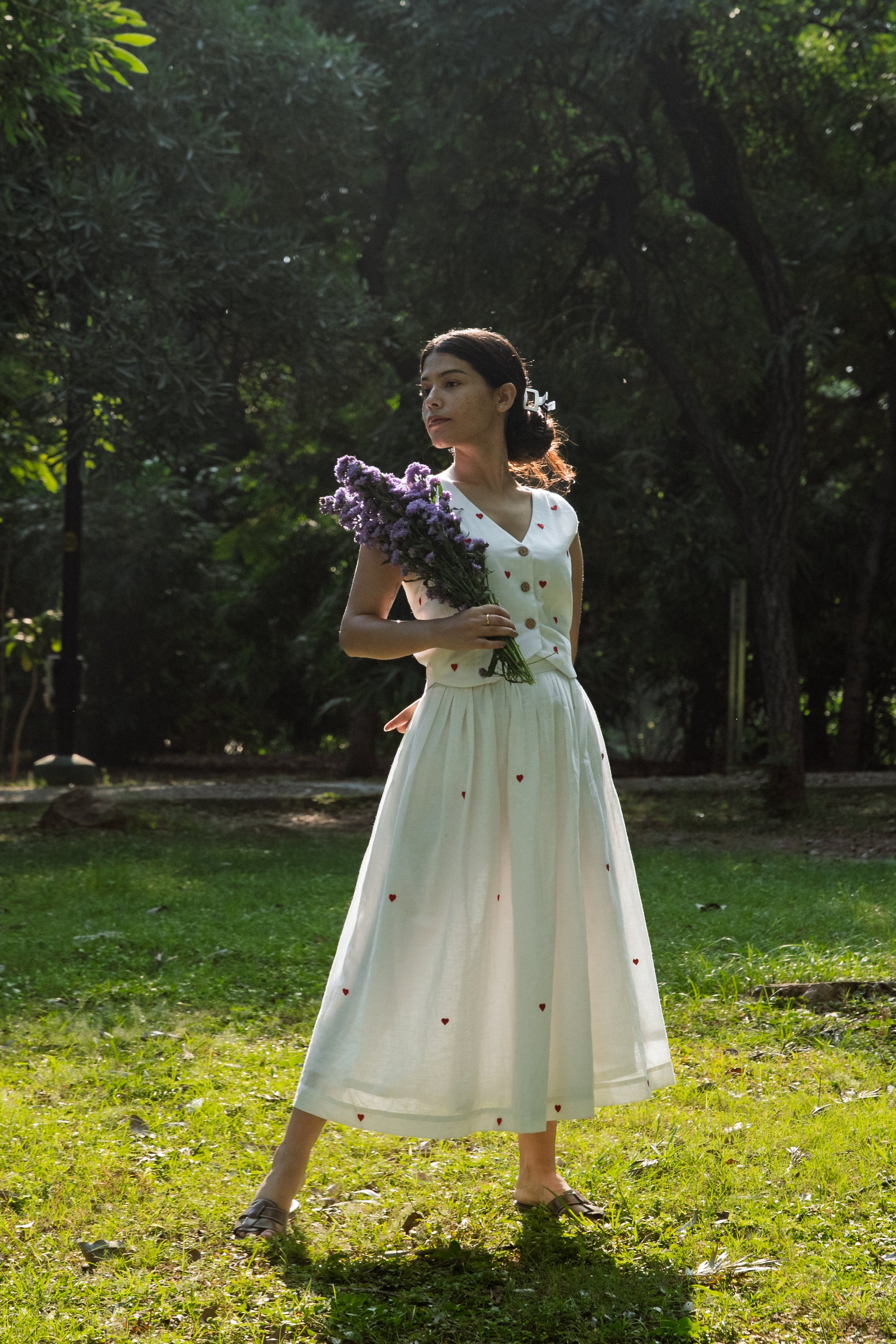Certain clothes you wear because you’re in the mood to, certain other clothes, you wear because you want to get into a mood. The Cross My Heart Co-ord is the latter kind - in the mood for chic, peppy, and to be the centre of attention in a room? This one’s for you!